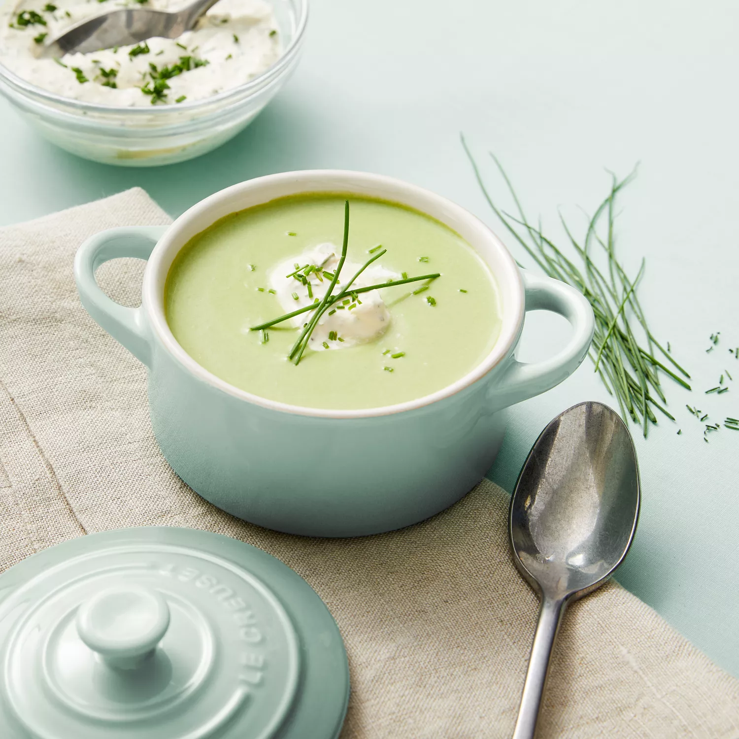 Ladle soup in warmed soup bowls and garnish with a dollop of crème fraîche.