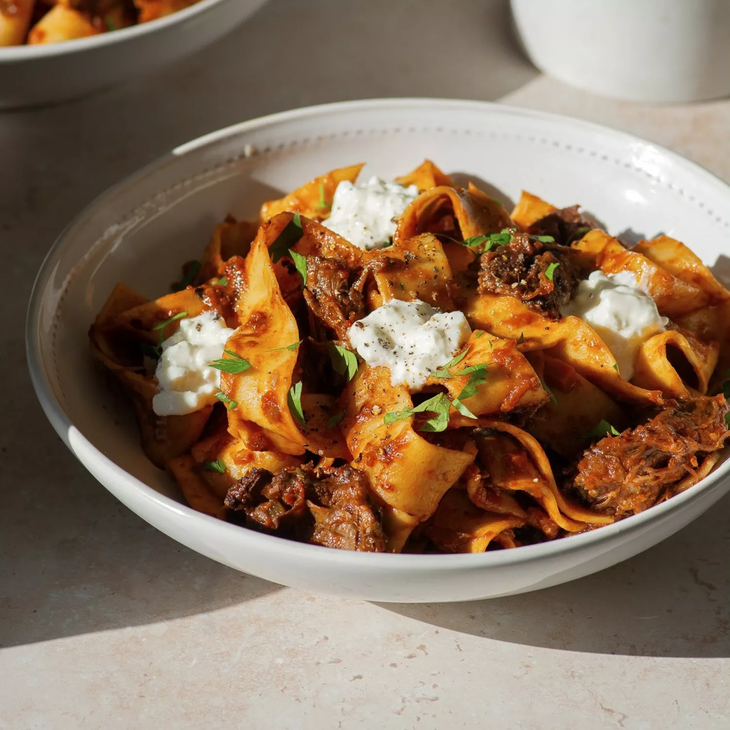 Braised Short Rib Ragu with Pappardelle and Burrata