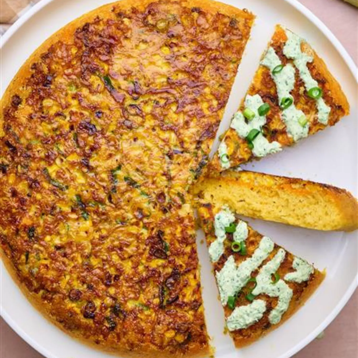 - Spread the fritter mixture into the pan in an even layer and press down lightly. Cook undisturbed for 4–5 minutes, until the edges are browned and the bottom is golden and crisp.