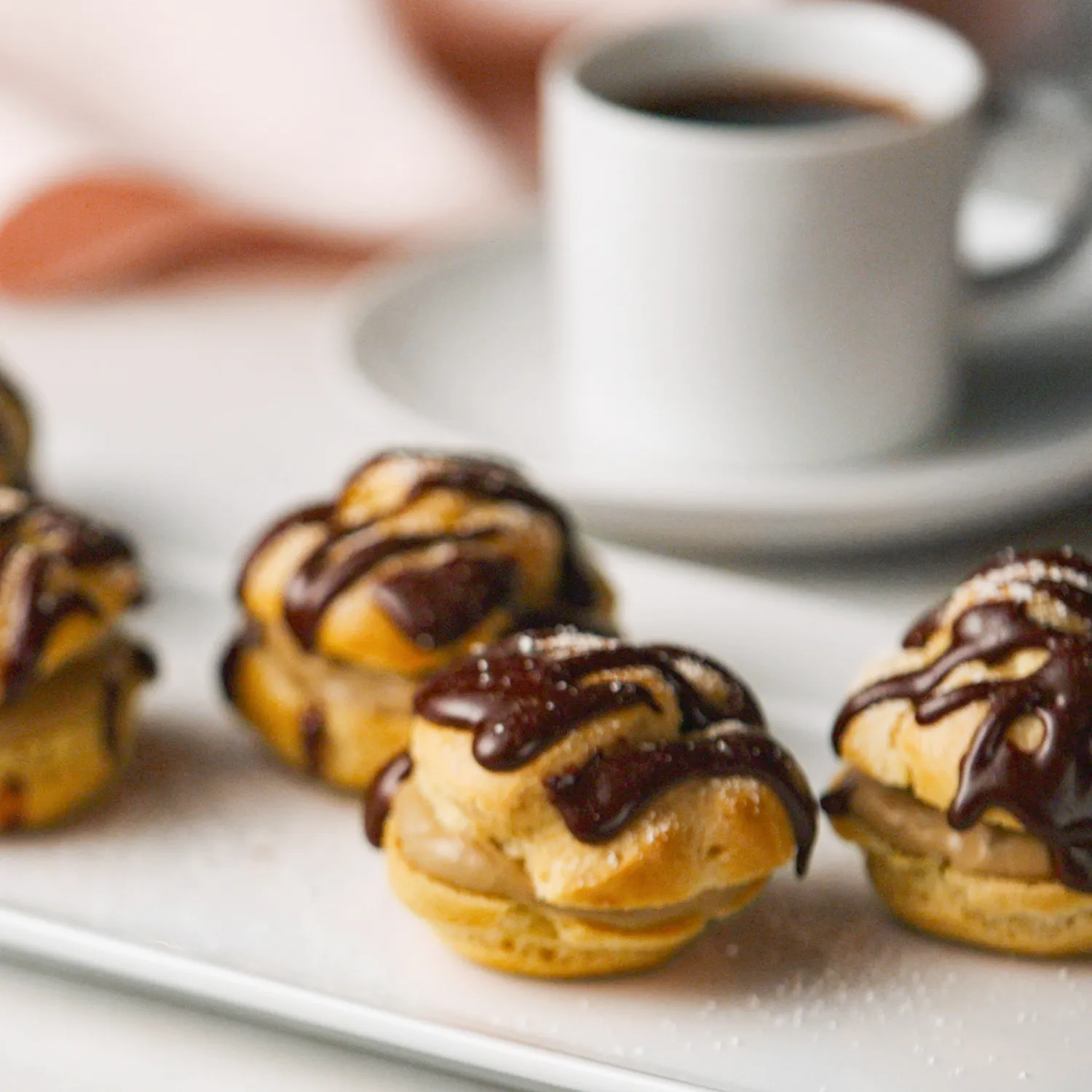 Brush a light coating of egg wash over the tops of the piped dough with a silicone pastry brush, being careful that the egg does not drip down the sides (it will glue the puffs to the parchment). You will not use all the egg. Bake both sheets of the puffs for 20 minutes, then reduce the oven temperature to 350°F, switch the sheets between the racks, rotate the pans from front to back, and bake for 20 minutes longer. Reduce the temperature again, to 300°F, and bake 10 to 15 minutes longer (to dry out the interior). The puffs should be a deep golden brown, with no bubbling moisture visible around the sides. Transfer to a rack to cool. Transfer to a rack to cool completely.