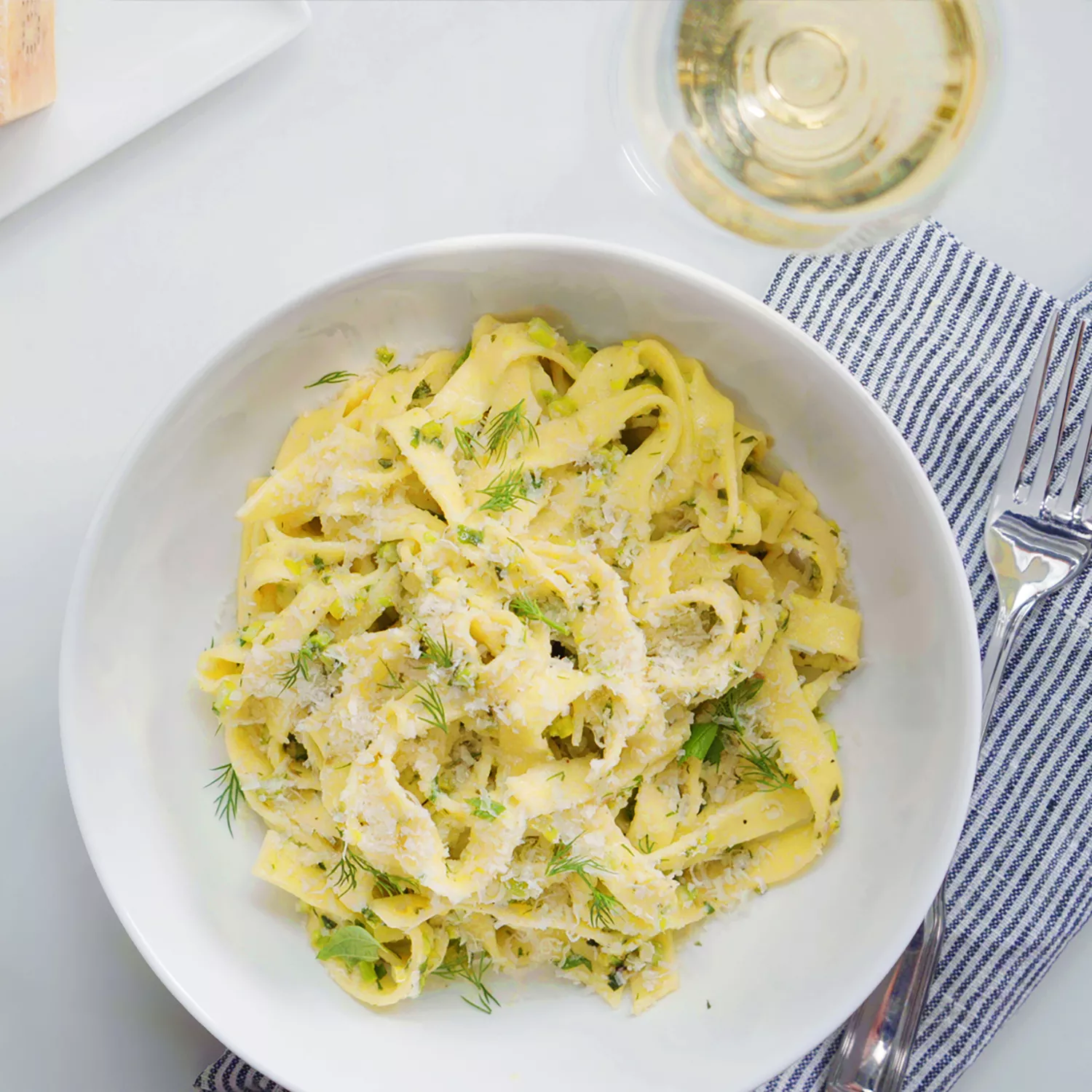 To cook the fettucine: Generously season water with salt. Add pasta to the water and stir to prevent fettucine from sticking together. Boil until al dente, 2 to 3 minutes. Reserve 1 cup of pasta water and drain pasta through a colander. Transfer pasta to the skillet with sauce and gently mix, adding the reserved pasta water to loosen sauce as needed. Add the herbs and toss to combine. Taste and adjust seasoning with salt and pepper, lemon juice, and lemon zest.