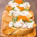 To serve: Spread each crostini with about 2 teaspoons of salmon and chive mousse. Arrange thin slices of remaining smoked salmon over the top, and serve.