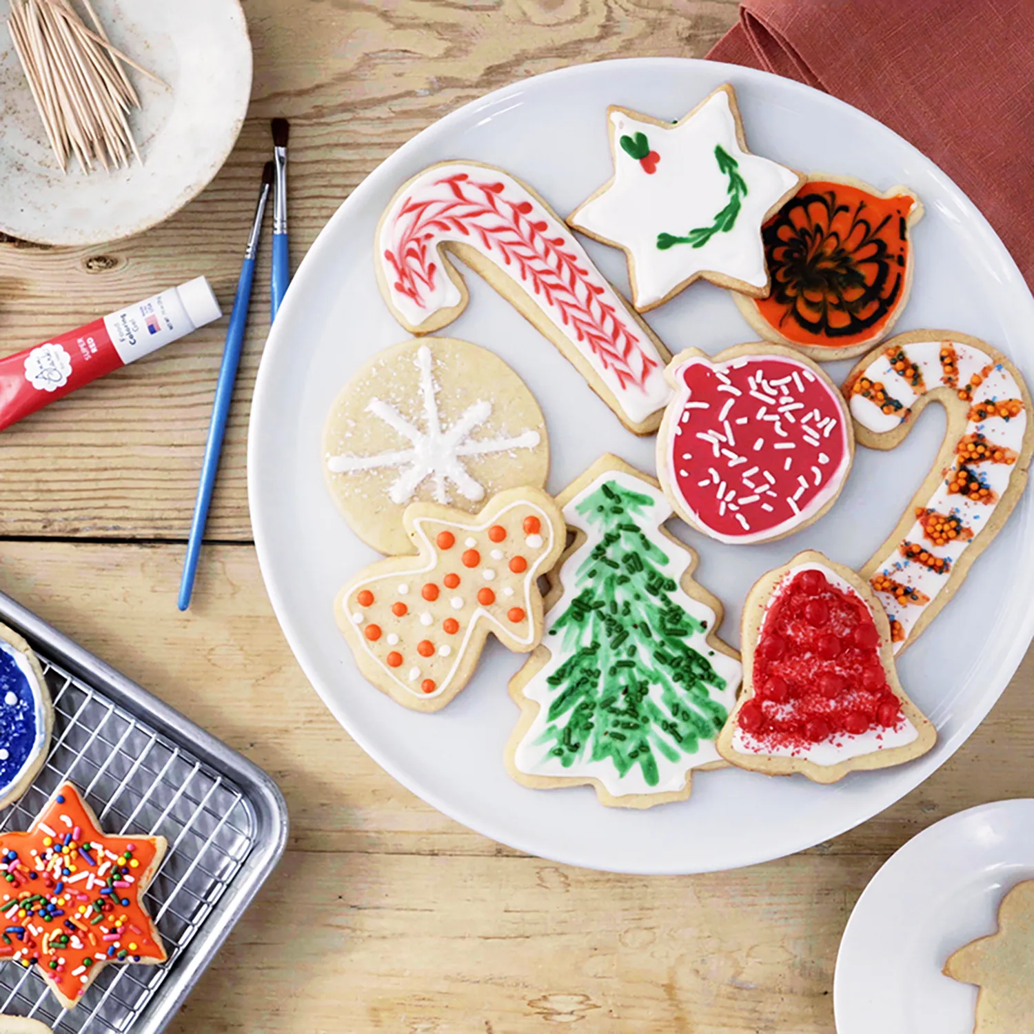 To bake: Bake until cookies are pale but set, 8 to 10 minutes, (baking times will vary based on the size and thickness of your cookies) rotating sheets halfway through. Remove sheets from oven and transfer cookies to a wire cooling rack. Cool completely before decorating.