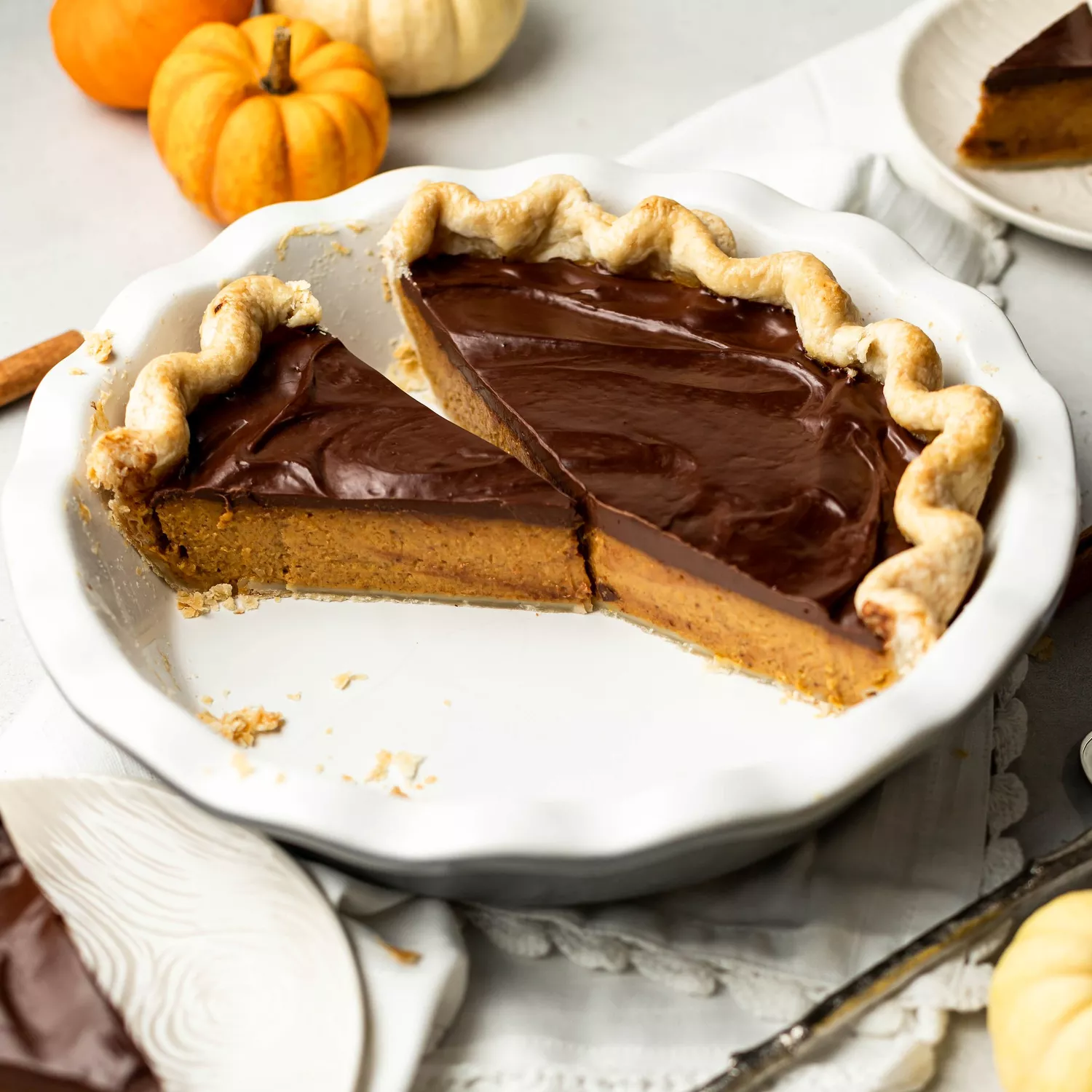 Pour the ganache over the top of the pie and spread evenly. Let the pie chill in the refrigerator for another hour.