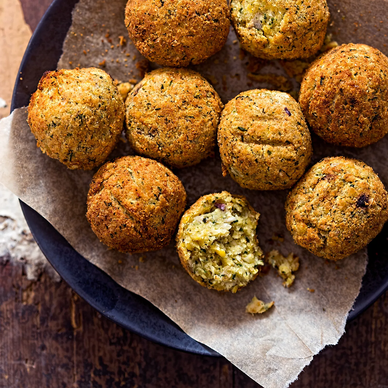 Form falafel mixture into 20 disks about 2-inches in diameter. Heat thin layer of oil in large cast iron skillet over medium high heat. Working in batches, cook falafel 2 to 3 minutes per side until browned and crisp.