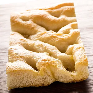 The top of the focaccia is dimpled and brushed with oil to keep the bread moist and flavorful. The dimpling in the dough is usually accomplished by poking it gently with the fingers just before dressing the bread. The dimples collect oil and any added herbs and spices—creating pockets of flavor. A well-made focaccia should feel light and flavorful, not greasy and heavy.