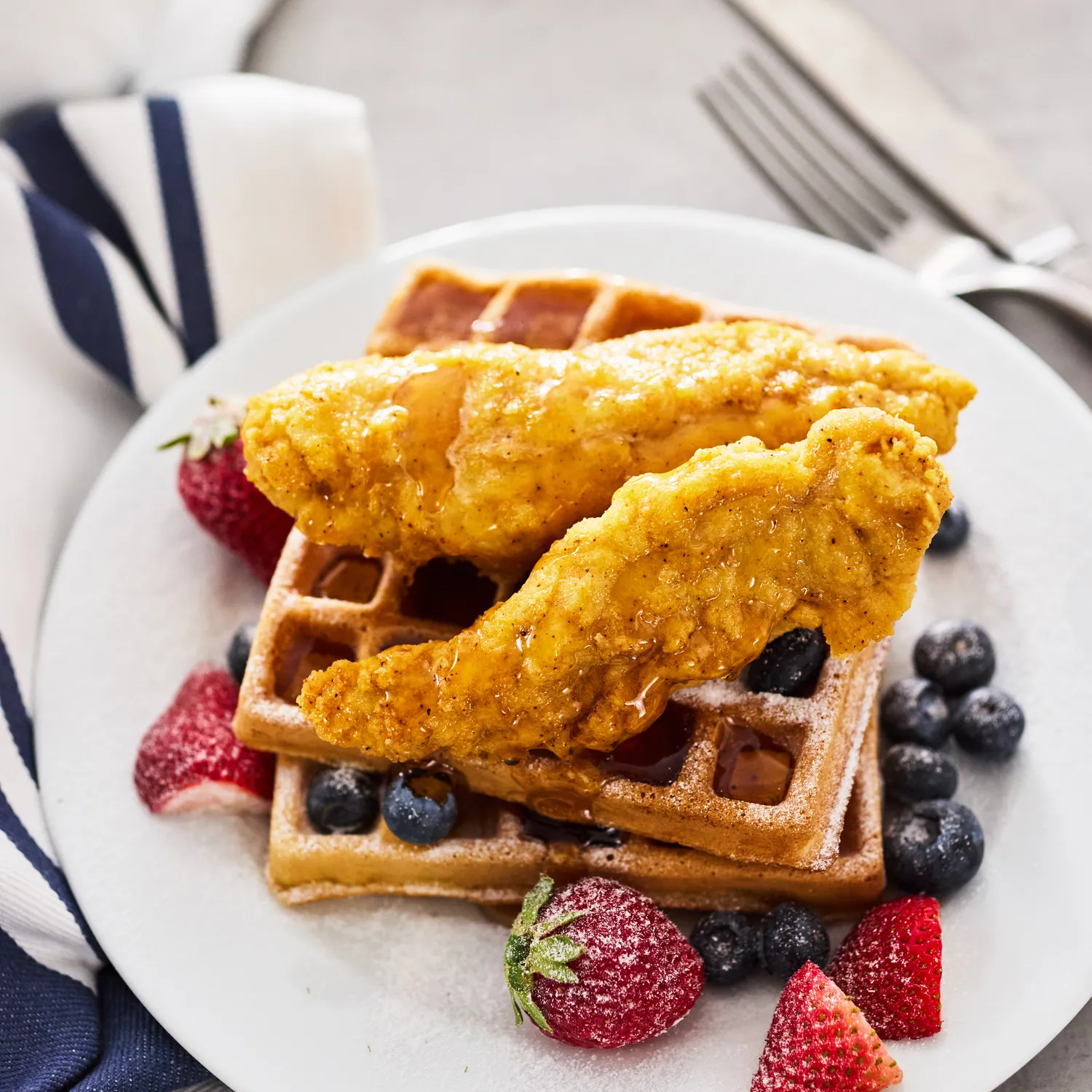 7. To fry chicken: Add coated chicken to hot oil carefully, skin side down. Once all chicken is in the oil, adjust heat so that oil temperature returns to 350°F. Continue to adjust heat as needed to maintain temperature throughout frying process. After about 15 minutes, check chicken. Once a rich, dark-color crust has developed, turn each piece. If chicken still looks light in color, cook for a few more minutes before turning.