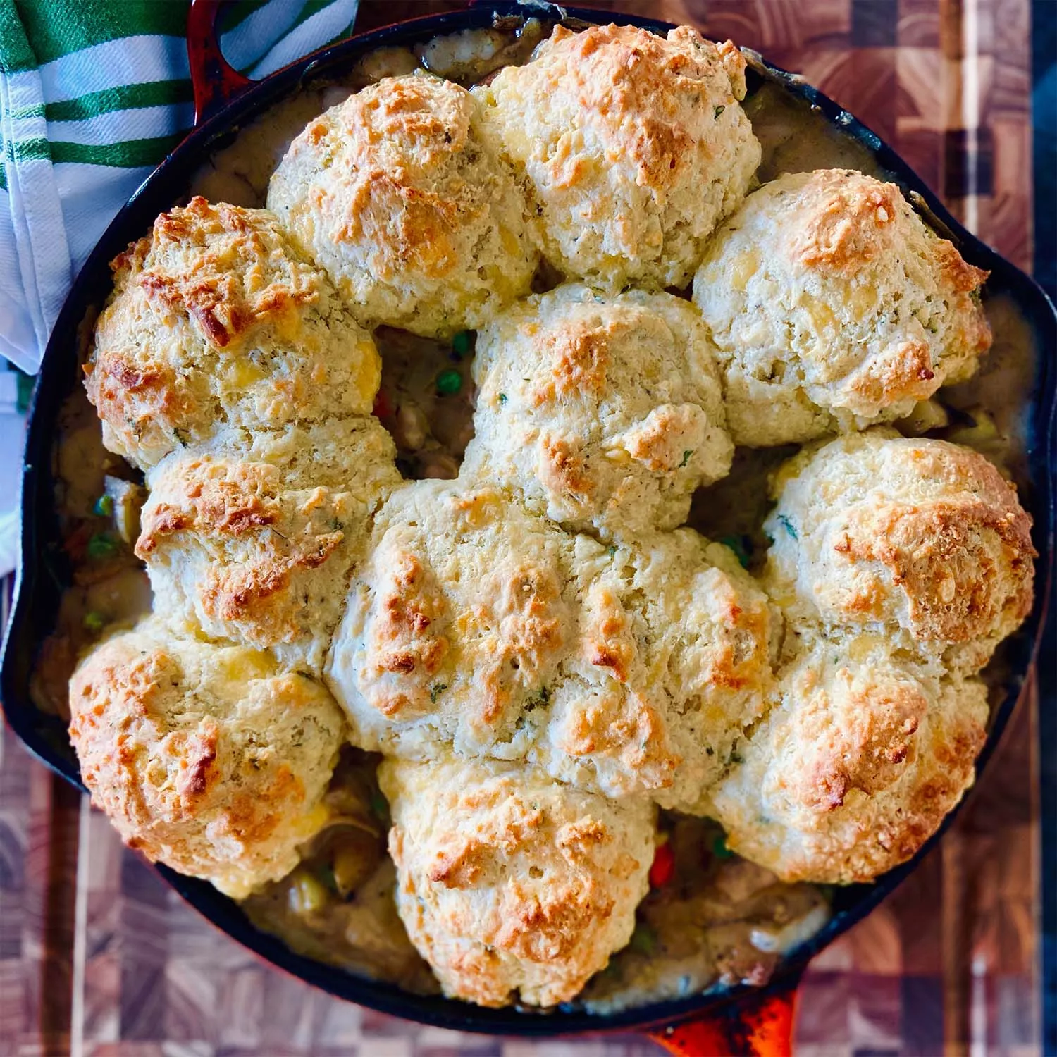 Transfer pan to preheated oven and bake until biscuits are puffed and golden brown and filling is bubbling, 25 to 35 minutes. Let stand 10 minutes before serving.