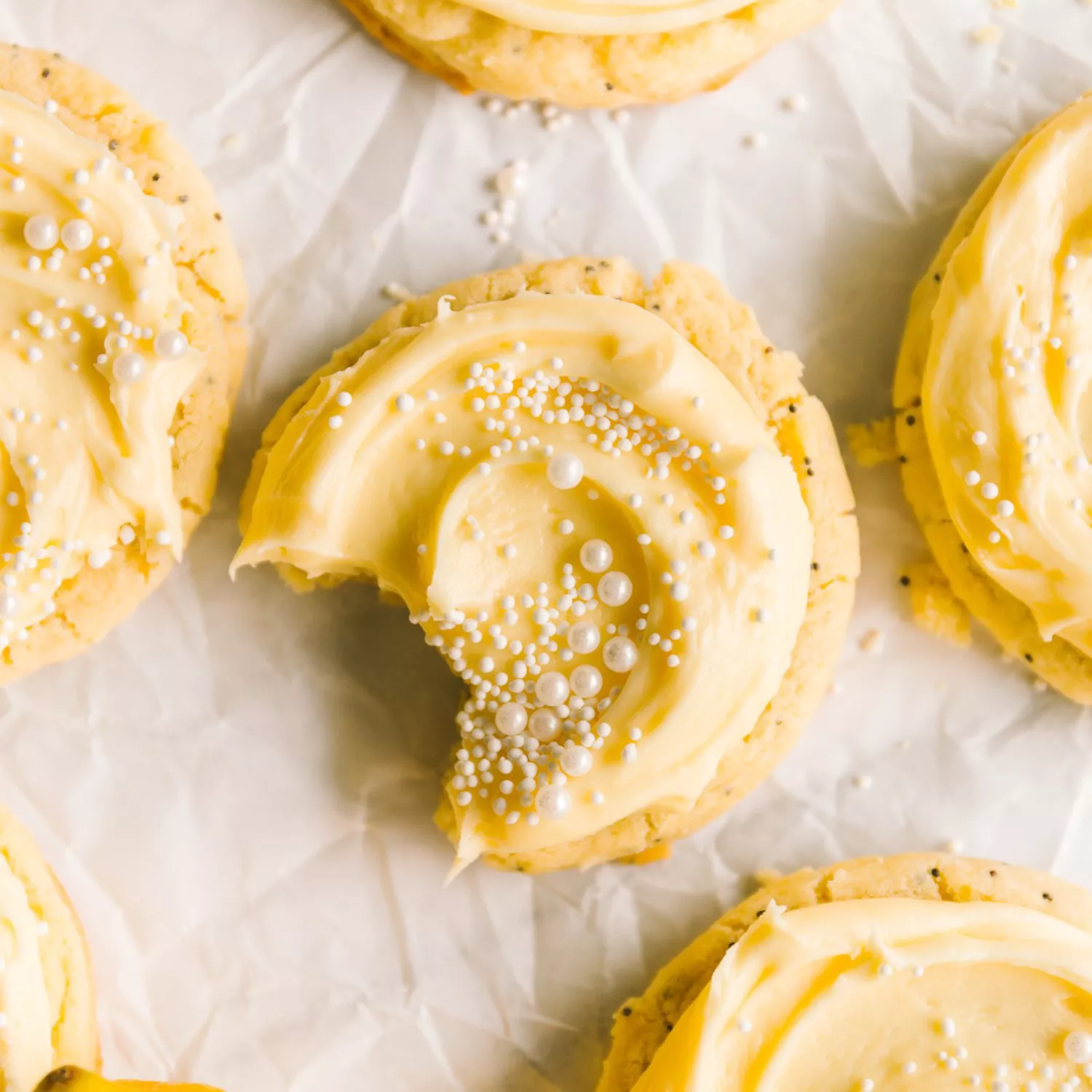 Spread the frosting onto the cooled cookies, top with sprinkles and enjoy!