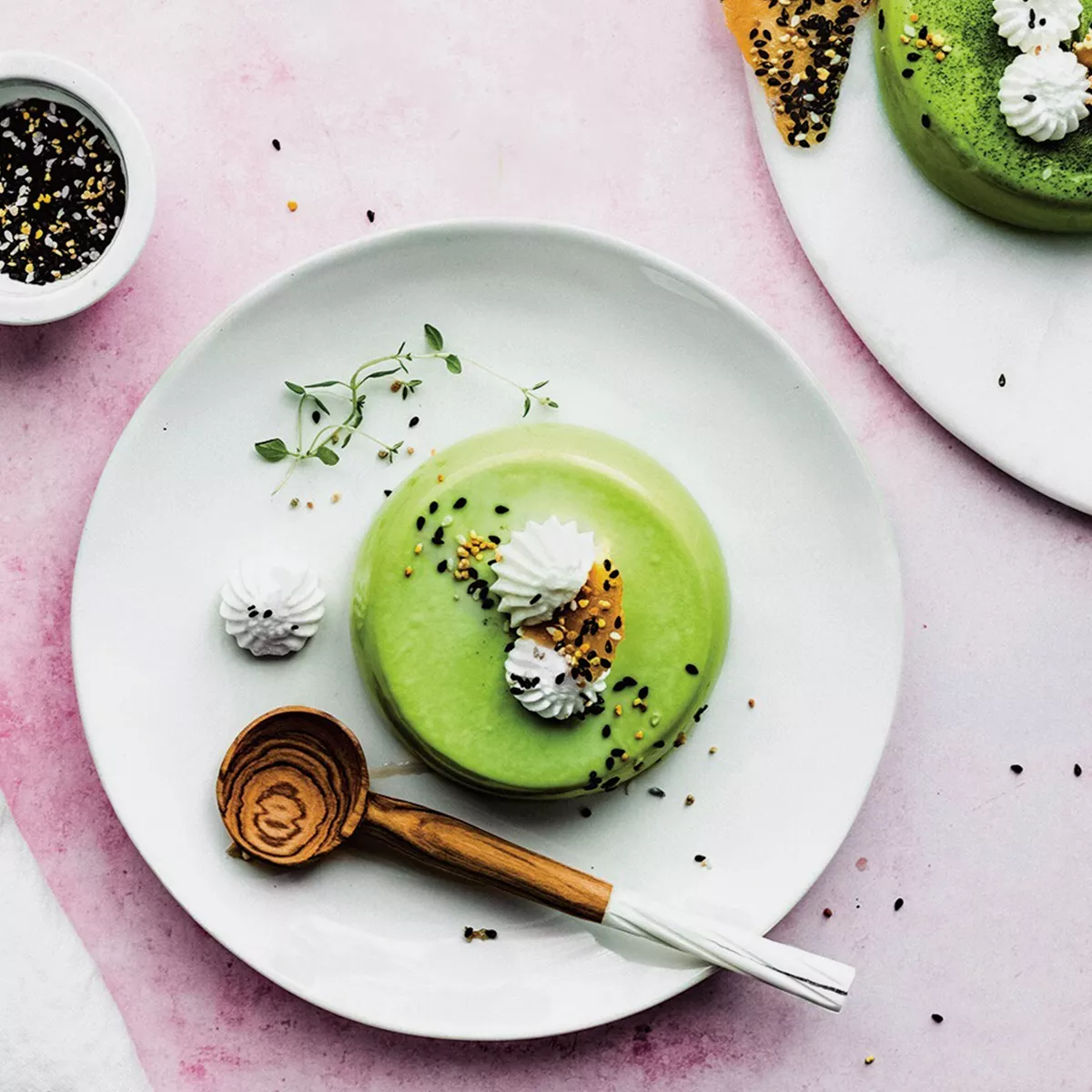 When ready to serve, dip each ramekin into a bowl with hot water for 5 seconds. Invert ramekin onto a serving plate. Top with fresh whipped cream and sesame brittle.