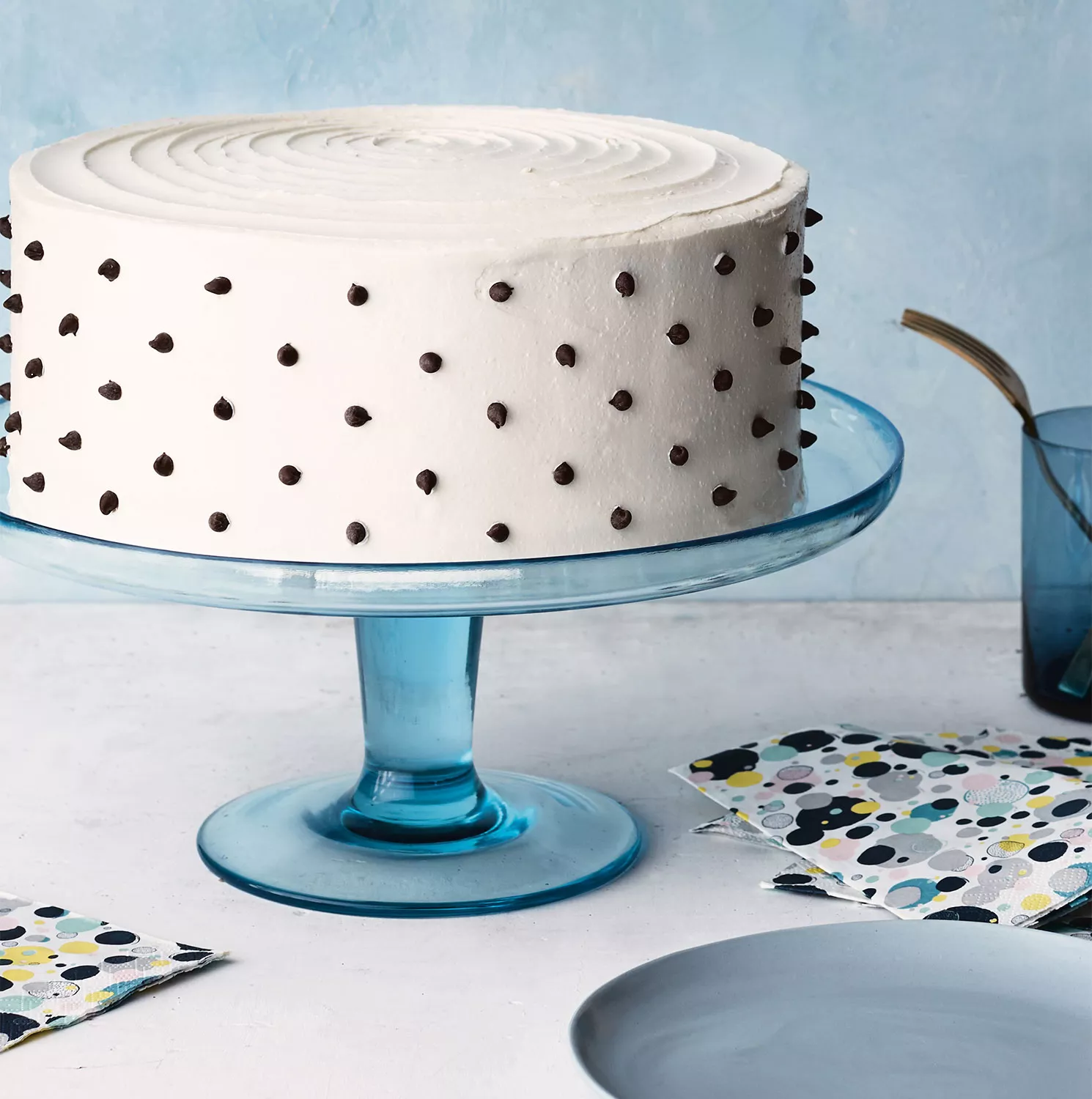 This is what happens when your favorite childhood dessert grows up. We created this elegant cake with milk and cookies in mind: The batter is brown sugar–tinged, for a cookie-dough-like flavor, and flecked with miniature chocolate chips— plus toffee for a caramel crunch. And the milk? A luscious créme anglaise buttercream.
