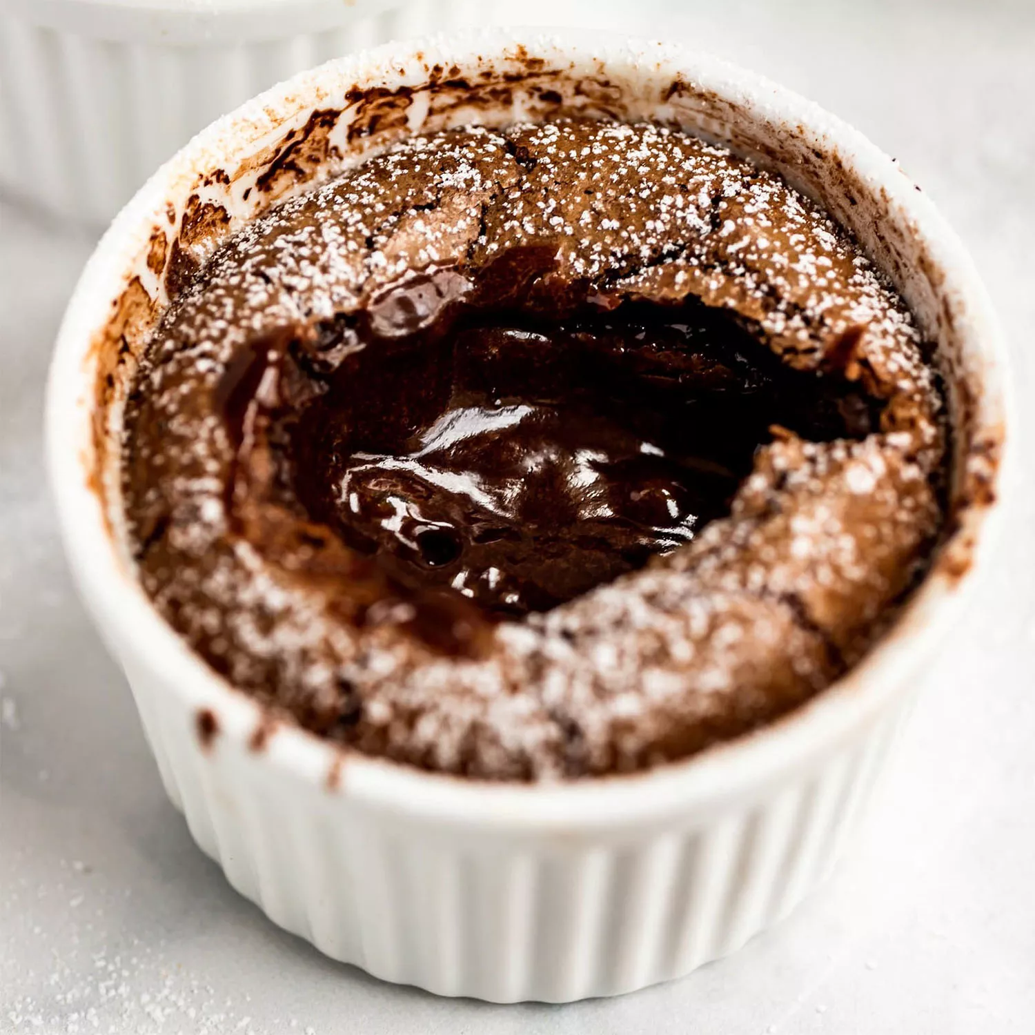 Rich and fudgy brownies with melty chocolate centers. Dust with powdered sugar and top with ice cream to serve.