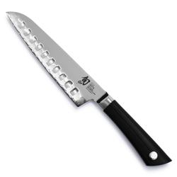 Global’s sleek, razor-sharp cutlery is an excellent choice for professional chefs and discerning home cooks alike. This santoku knife is ideal for slicing fish, cutting meat, and chopping vegetables. Plus, the hollow edge features scallops (called...