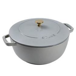 A Belgian-made 8 qt. stockpot with five-ply stainless steel construction for even heat distribution.