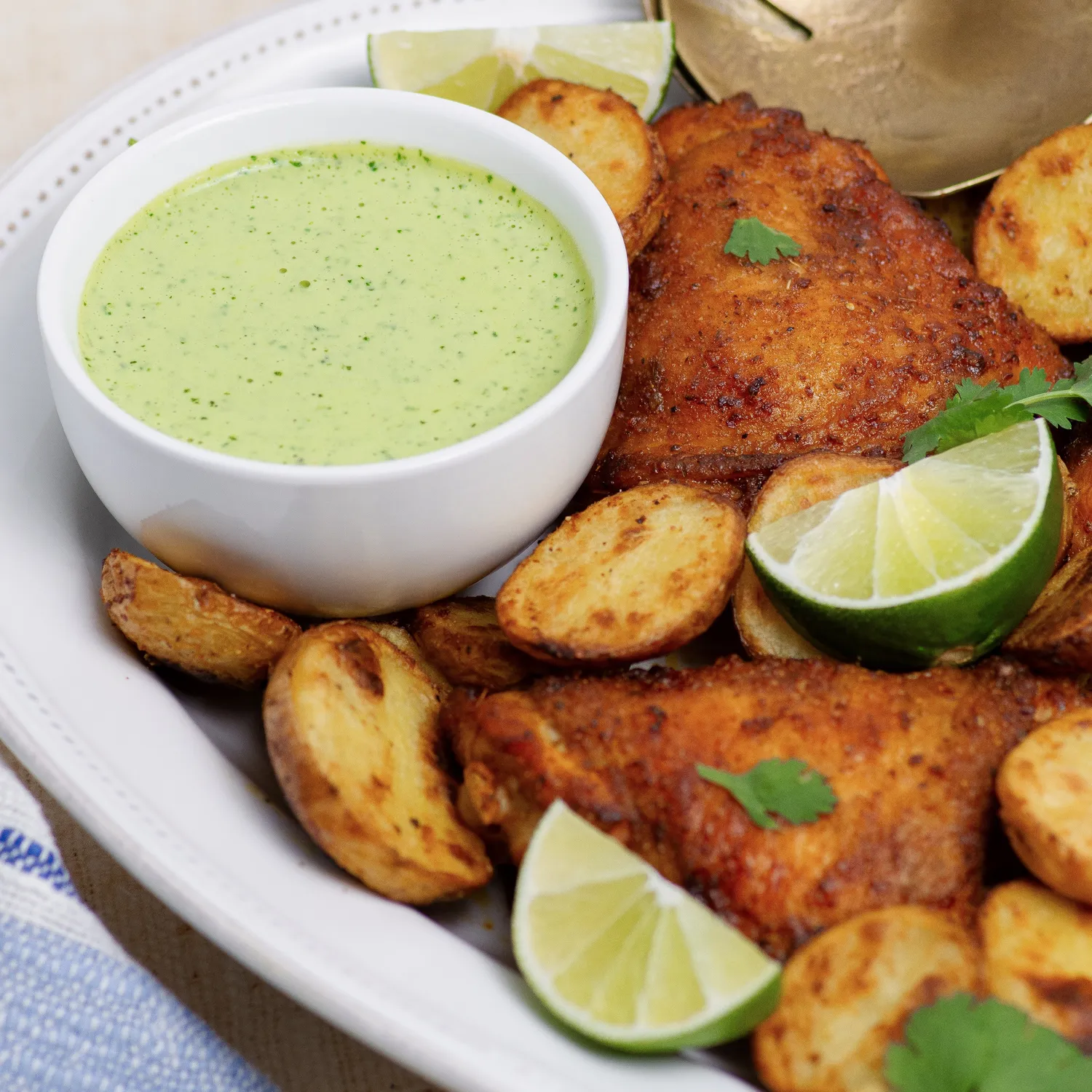 Peruvian Roast Chicken with Crispy Potatoes & Aji Verde