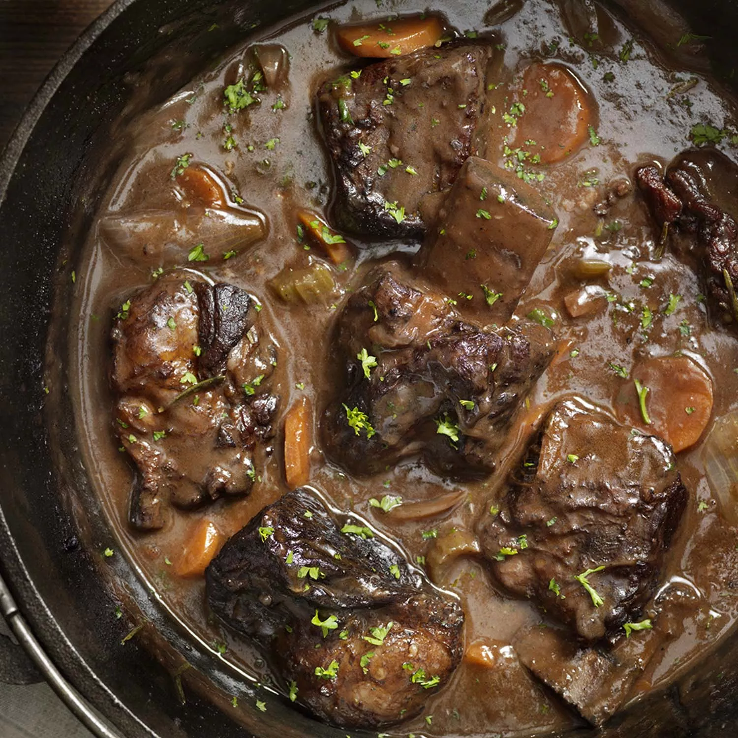 - 3 to 4 pounds bone-in beef short ribs, cut between the bones into 2-inch pieces