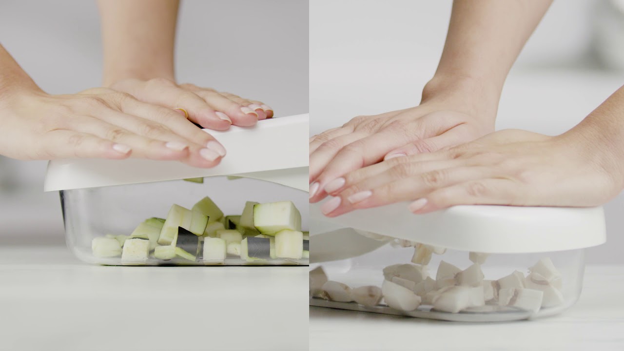 Quickly and safely prep a variety of vegetables and fruit with this handy chopper. Stainless steel blade pattern and recessed cutting area keep food in place, while the lid provides leverage for efficient chopping. The 2.5-cup capacity body collects chopped food and features a convenient opening for easy pouring. Non-slip base provides stability for safe chopping.SKU 2755486OXO Good Grips Vegetable Chopper with Easy-Pour Opening