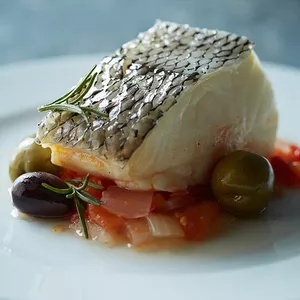 Place the bass on top of the tomato mixture. Season with salt and pepper. Cook in the microwave for 1 minute and 30 seconds at 800 watts and let sit 1 more minute before opening the steam case.