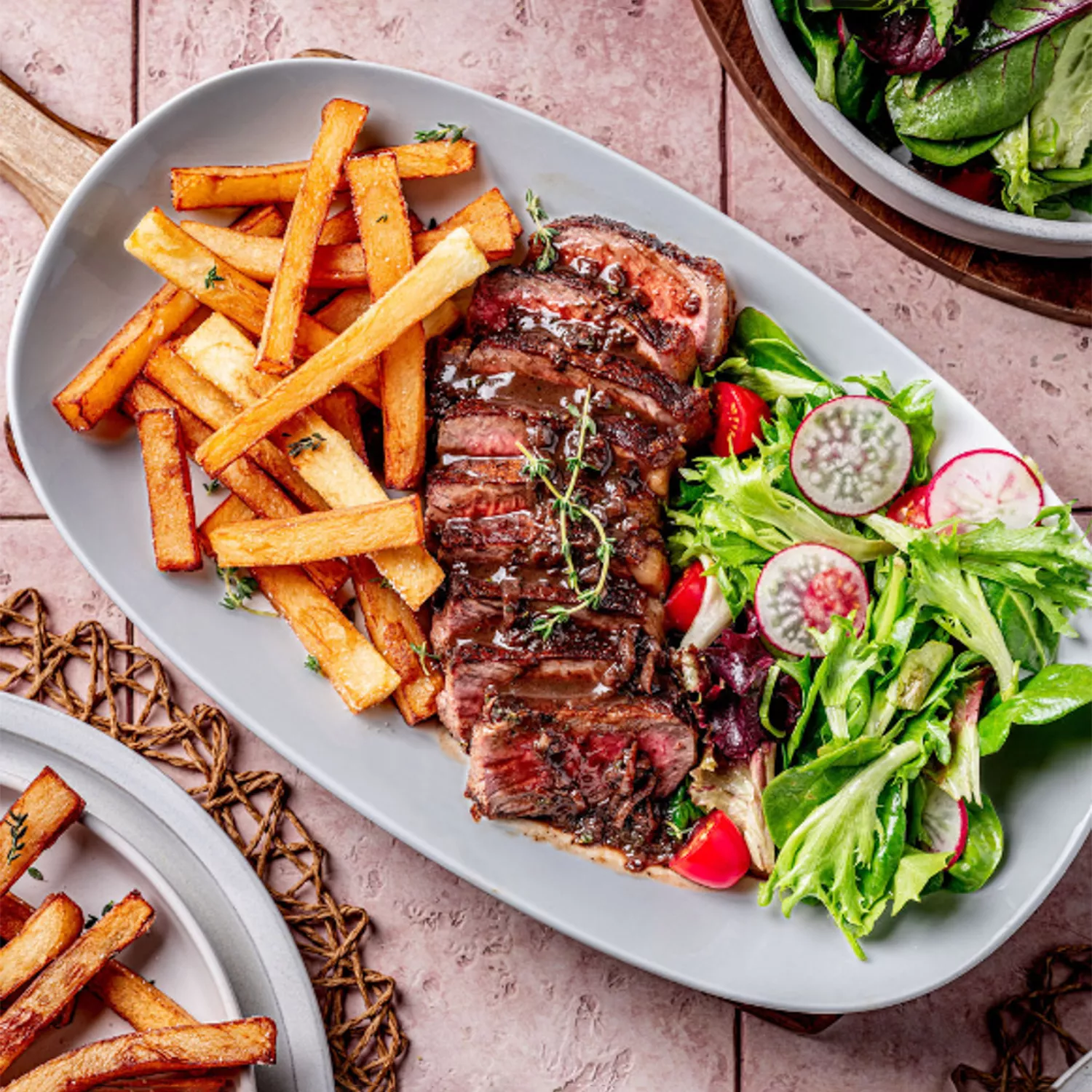 Seared Steak with a Red Wine Pan Sauce & Pommes Frites