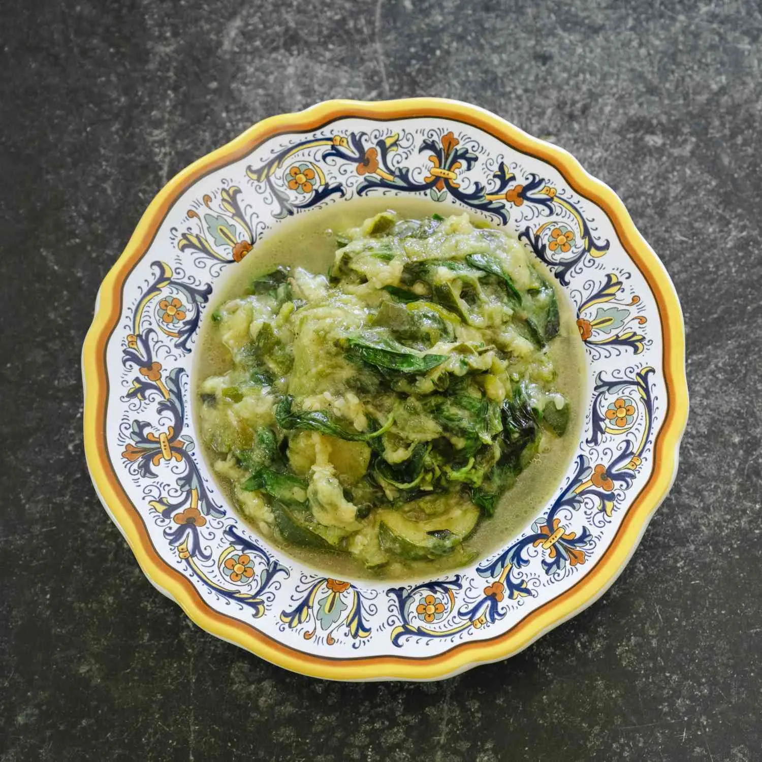 Here’s an Italian-inspired stewy vegetable dish of the kind I love so much. With enough good olive oil and garlic, firm, small-gauged zucchini becomes a perfect no-effort stew to eat on a hot summer night with ripped-off hunks of bread and a bit of sharp ricotta