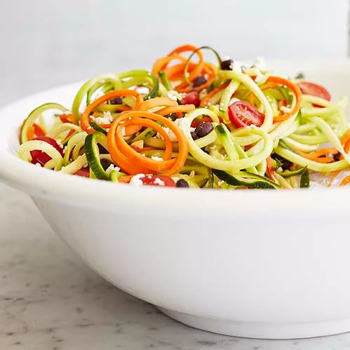 Banish boring salads with this zesty mix of spiralized zucchini and carrots, black beans, tangy feta and creamy chipotle-lime dressing.