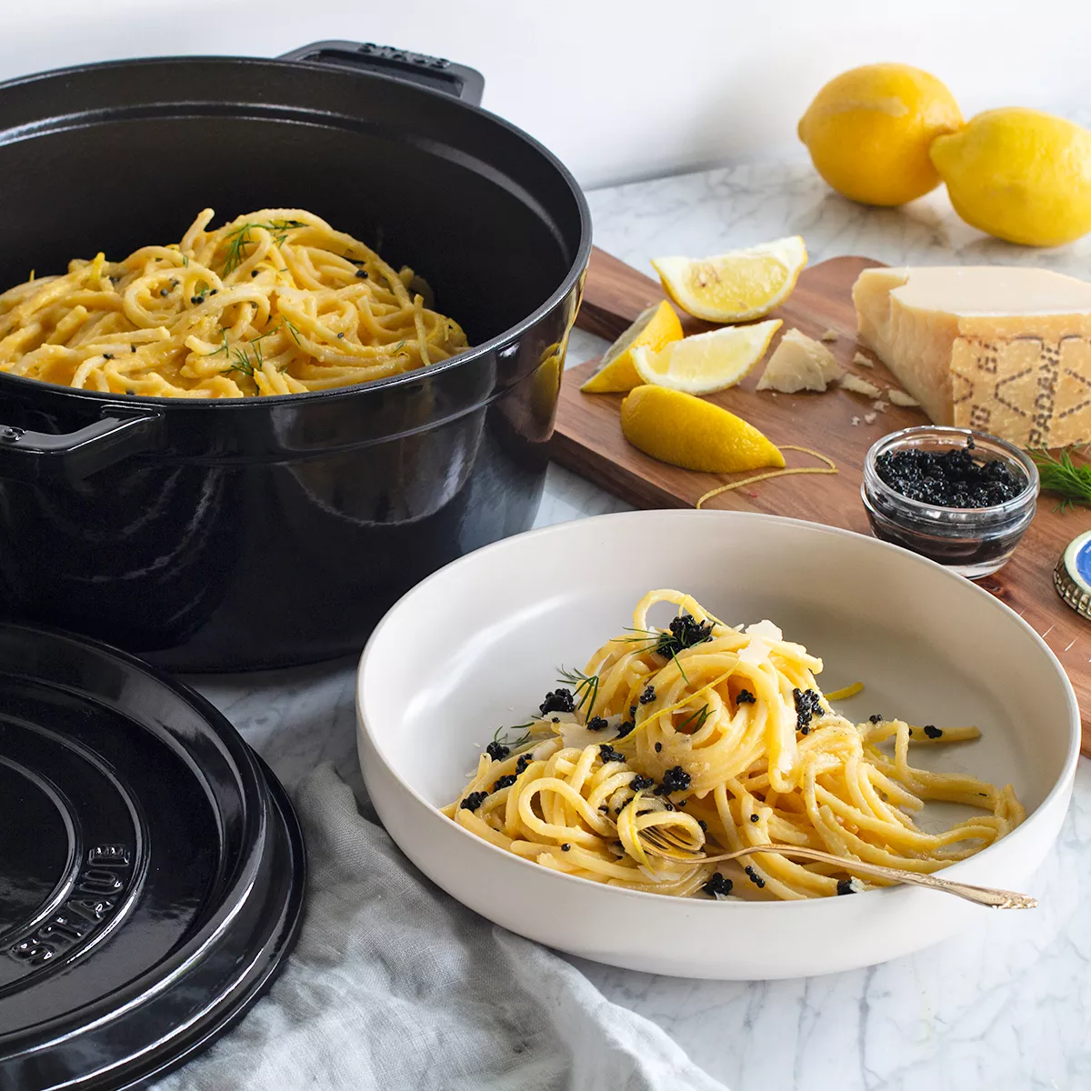 Carbonara must be enjoyed as soon as it is ready in order to appreciate the full benefits of the silky sauce. The secret to this dish is timing and having everything prepped before you start cooking.
