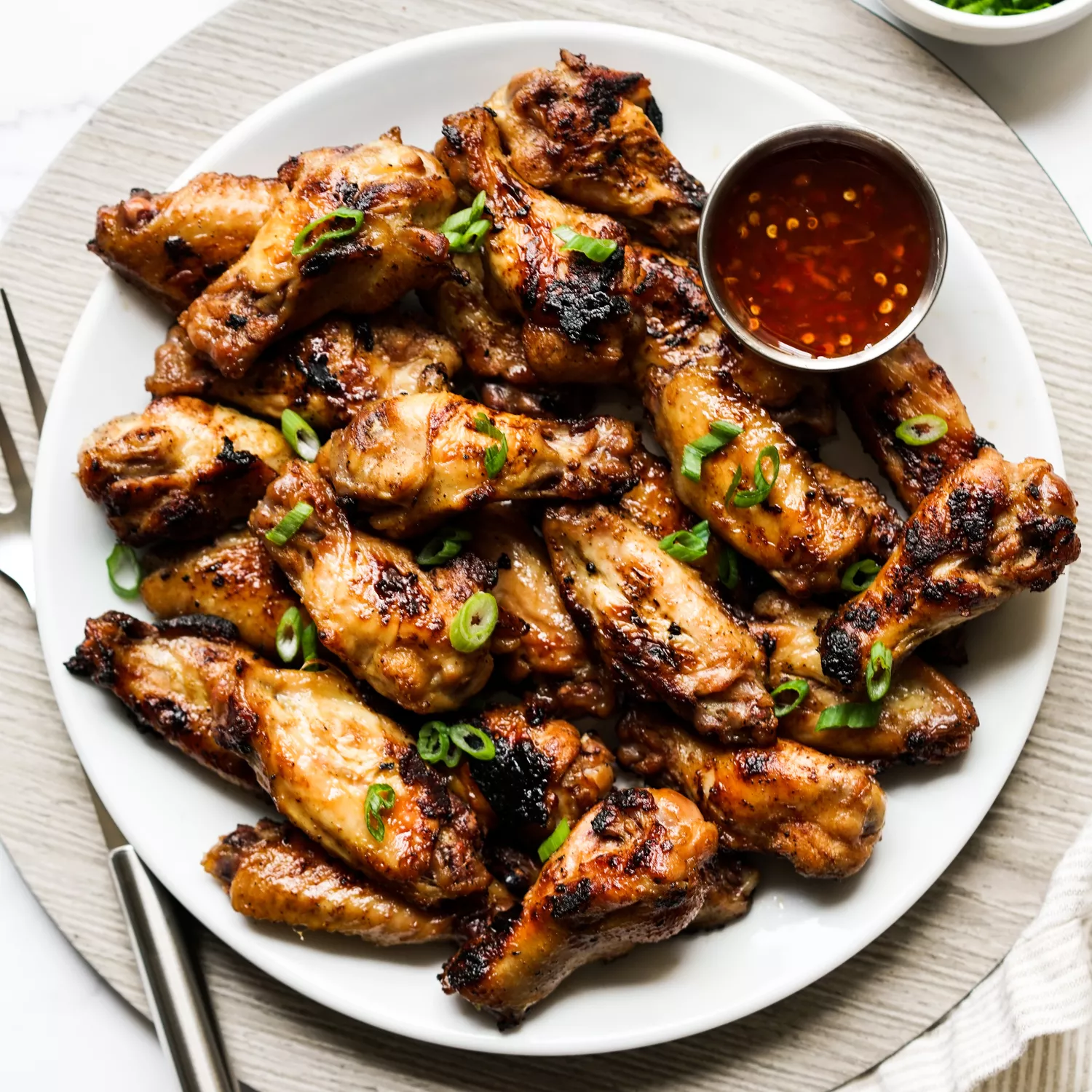 Delicious, smoky, bold-flavored Thai inspired grilled chicken wings marinated with fish sauce, soy sauce, garlic, lime juice and brown sugar. Served with Thai Chili sauce.