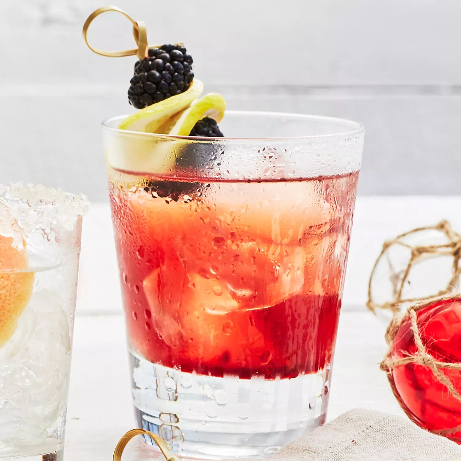 Add the lemon juice, honey and blackberry to the shaker. Muddle the ingredients in the bottom of the shaker until thoroughly crushed. Add the vodka and ice to above the level of the liquid and shake vigorously for 10 seconds. Strain the mixture into tumblers containing large cubes of ice, top with seltzer and garnish with remaining blackberries and lemon slices.
