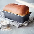 Place wheat dough rectangle on top of the white dough. Roll the two tightly together. Repeat. Place in two greased 9 x 5 loaf pans. Cover and let rise again for up to one hour (it should double in size). Bake at 375°F for 30 minutes. Remove from pans and cool.