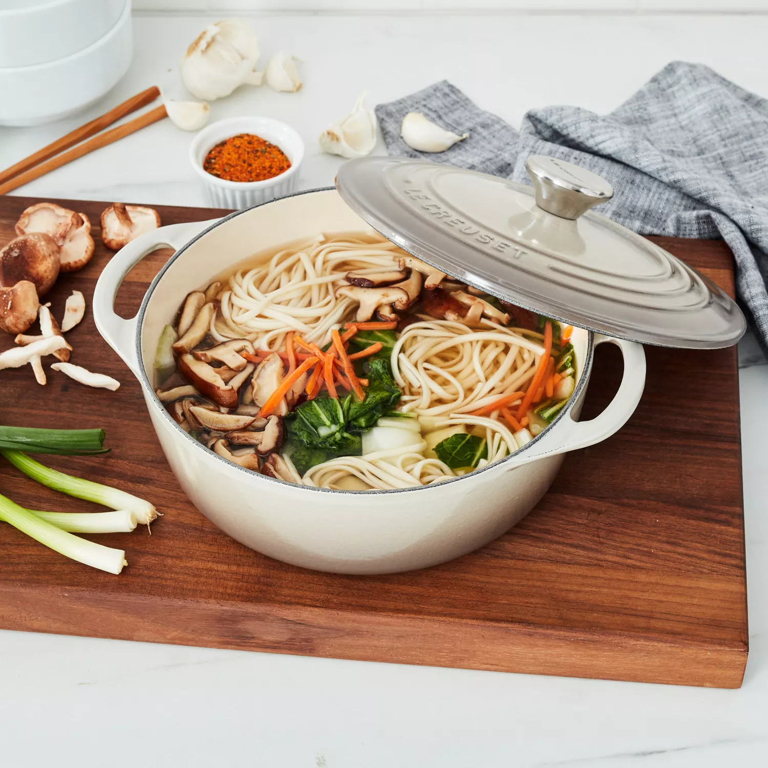 Add oil to a large pot or Dutch oven and heat over medium high heat until shimmering. Add onion and carrot and stir-fry until soft, add garlic and ginger and cook for one more minute. Add shitakes and baby bok choy and stir-fry until bright green and tender, about 3 minutes.